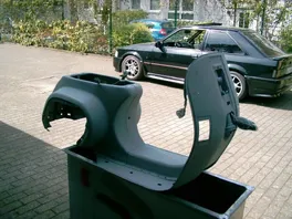 Sagen wir mal so: es ist nicht perfekt. Die Lackierung selber ist ziemlich gleichmäßig, keine Nasen oder so. Natürlich sieht man den ein oder anderen Fussel oder ne kleine Unebenheit. Aber dafür, dass ich kein Lackierer bin und auch nicht über die entsprechenden Geräte/Werkzeuge verfüge bin ich bisher eigentlich ganz zufrieden. Abgesehen davon, dass mich ne anständige Lackierung ca. 300-400 EUR gekostet hätte und mir das im Moment definitiv zu viel ist, war das jetzt die beste und schnellste Lösung das Teil erstmal auf die Straße zu bringen. Alles in allem ging es besser als ich dachte.