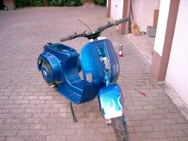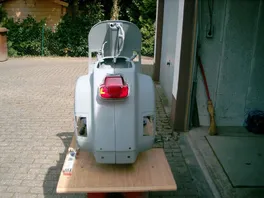 Freitag: Rahmen abgeholt, angeschliffen, Rücklicht angepasst und Löcher fürs Kennzeichen gebohrt. Dann den Motor fertig sauber gemacht, neuer Zylinder und neuer Auspuff drauf und was soll ich sagen: ER LÄUFT
