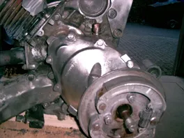 So, bin dank meiner Überstunden leider erst heute wieder zur Garage gekommen. Hab das Handschuhfach und die untere Lenkkopfverkleidung grundiert und eine Bremstrommel lackiert. Danach hab ich mir mal den Motor vorgenommen. Der war immer noch sowas von versifft, trotz Hochdruckreiniger. Mal zum Vergleich: So wie auf dem ersten Bild, sah der ganze Motor aus. Auf den Bildern kann man schon gut den Unterschied sehen. Bin noch net fertig, muß mir nen anderen Bürstenkopf holen, mit dem ich auch in jede Ecke komme. Mann, meine Hände kribbeln immer noch von der blöden Bohrmaschine...