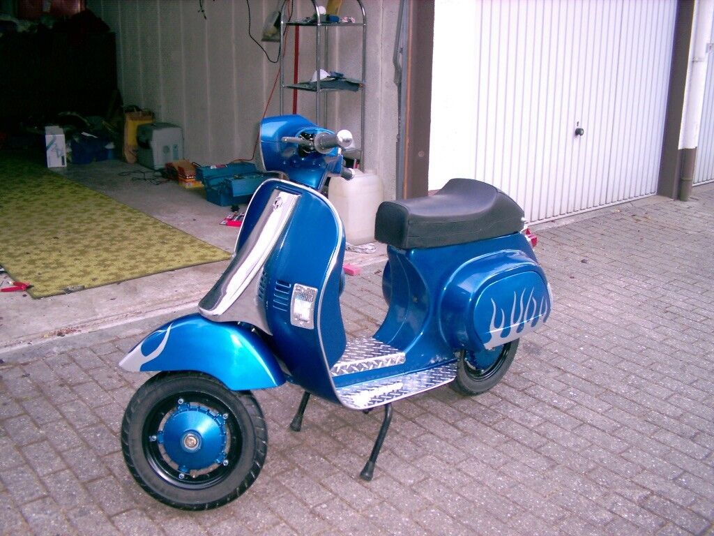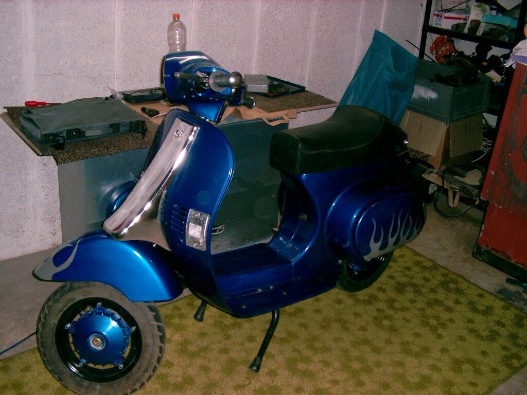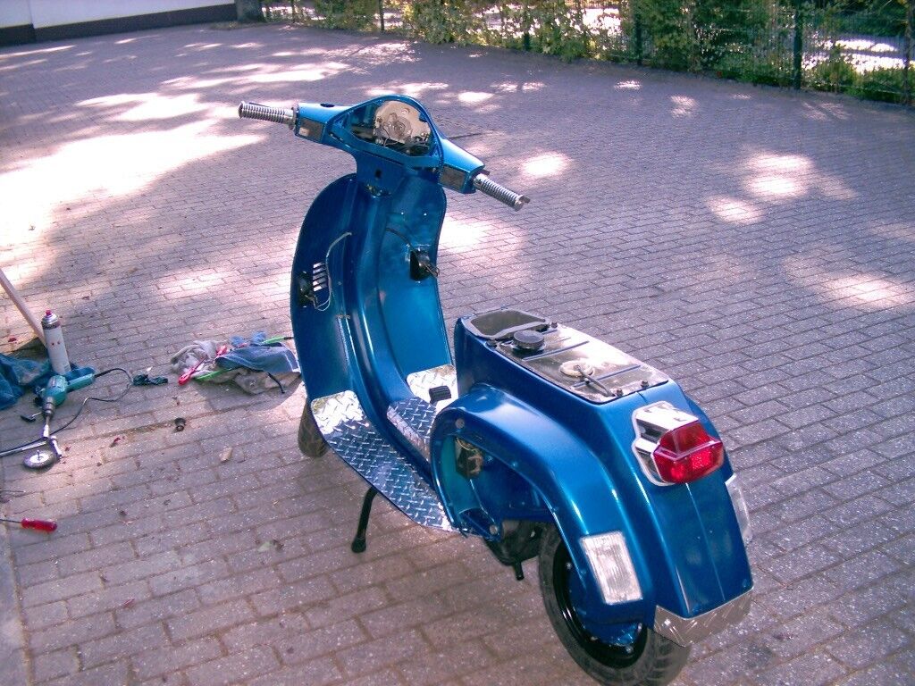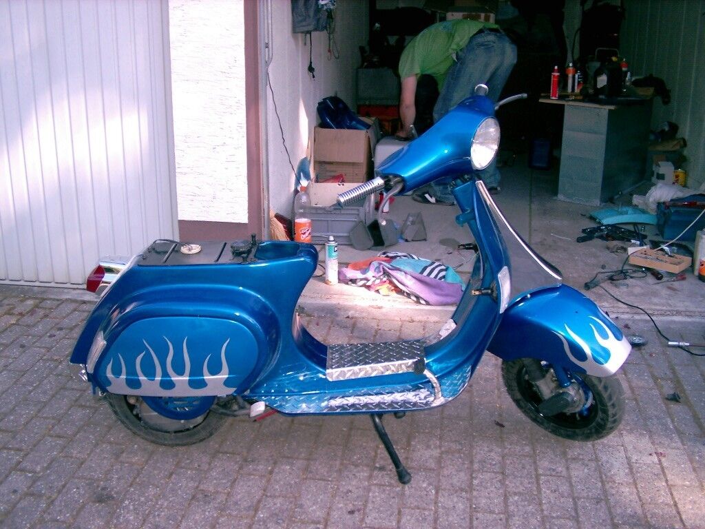 Leider hab ich nen Problem mit dem Vergaser, eine Schraube (vom Überlauf) ist rundgelutscht und somit ist das Teil undicht und tröpfelt. Nichts desto trotz habe wir die Vespa mehr oder weniger fertig bekommen. Muß quasi nur noch die Sitzbank und die Bleche befestigen und das Gerät dann einfahren..Hoffe, dass jetzt nix mehr dazwischen funkt. Ach ja, neue Embleme muß ich ja auch noch bestellen... -