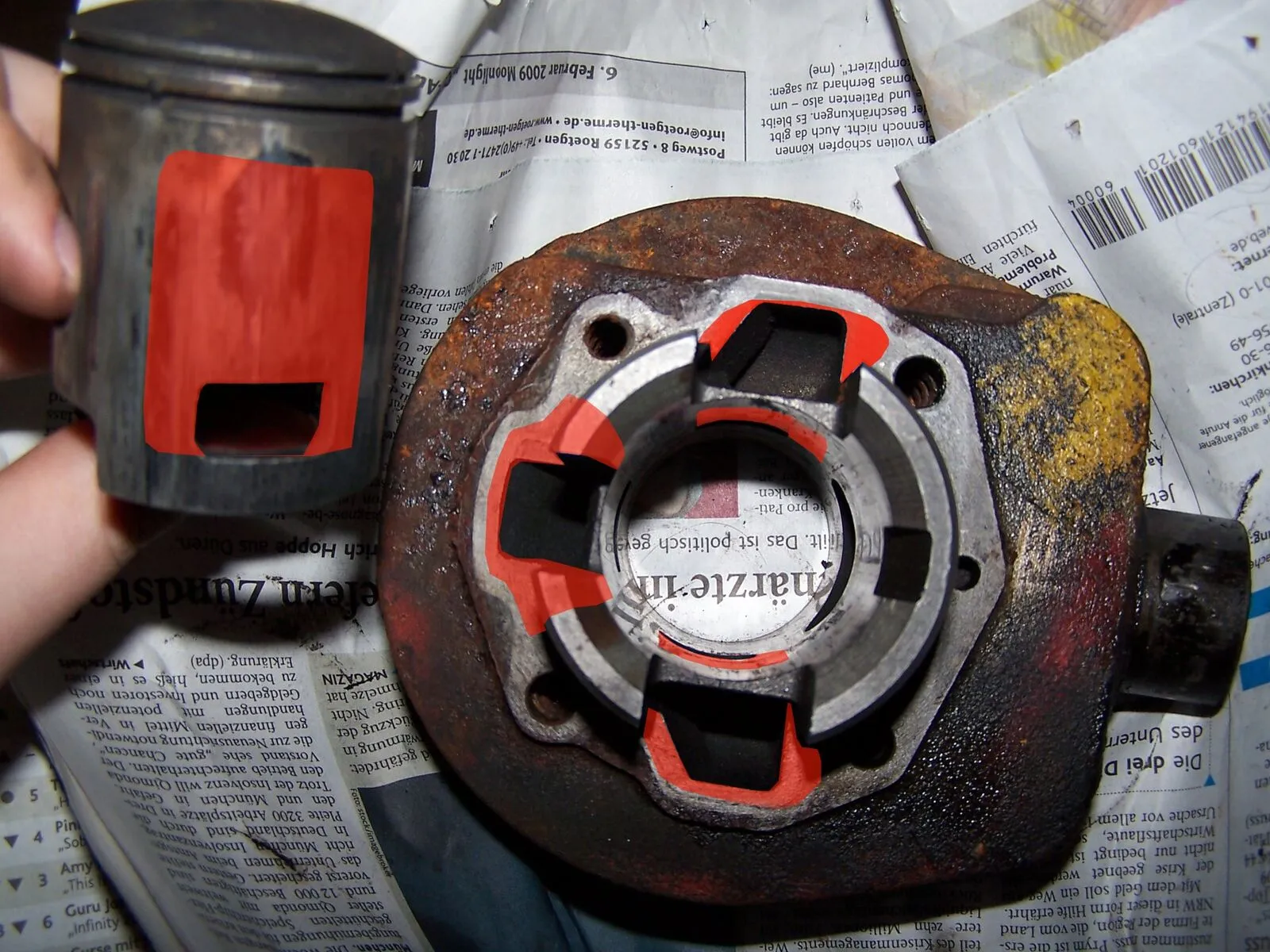 He, es ist ein 80er Zylinder. Das Boostportfenster ist viel zu groß. Mit dem O Puff wird das nie was. Abgesehen davon sind die Ringe am Kolben viel zu breit, als das da gescheite Drehzahlen bei rauskommen. Viel wird das alles nicht bringen, aber wenn Du das unbedingt angehen willst, dann bitte mit kleinem Boostportfenster.