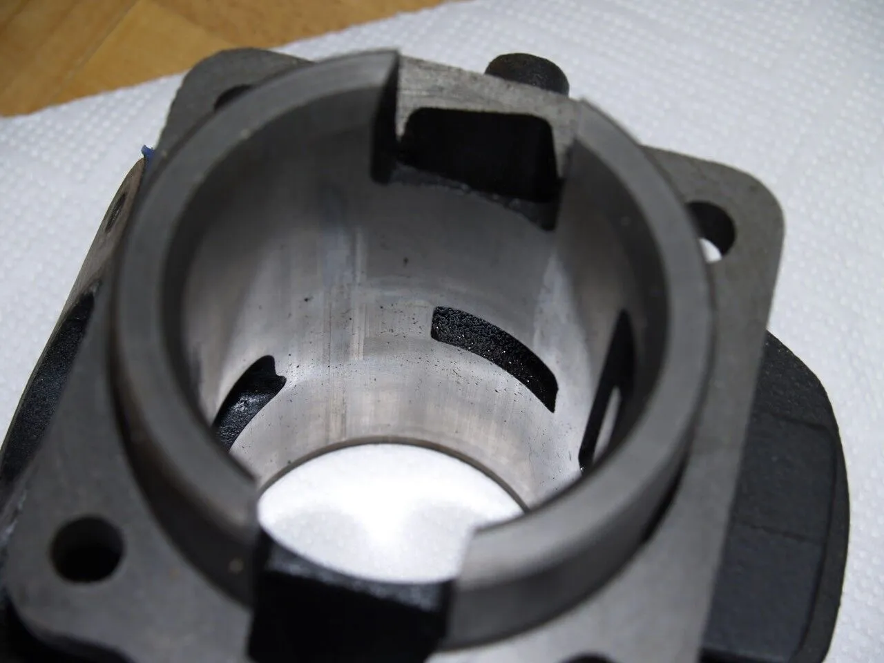 Ich will mal behaupten das der Zylinder so noch funktioniert. Im Bereich um die Kolbenringe sieht er noch gut aus, und auch die Wände sind nicht dramatisch. Was mich allerdings nicht los lässt ist der Umstand das alles daran irgendwie total geschwärzt ist. Kanns sein das der Zyli echt lange deutlich zu fett gelaufen ist? Ich würd mir vorm Einbau die Mühe machen und die gröbsten Verkrustungen ein wenig entfernen. Außerdem mit feinem Schmirgel über die geriebenen Stellen am Kolben gehen, nur der Grate wegen. Wenn du den Motor anschliessend vernünftig abstimmst und kein Drehzahlmonster aufbaust sollte der Zyli keine Zicken machen.