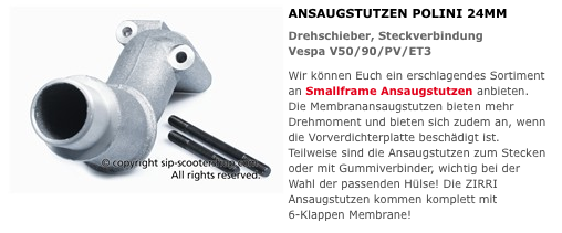 restauriere gerade meine ET3 und würde gerne folgendes Setup fahren: 130ccm (133er) Polini, Auspuff Polini left, 24er Dellorto Vergaser. Da es aber bei SIP verschieden Vergaser und ASS gibt nun die Frage, ob das hier passt?