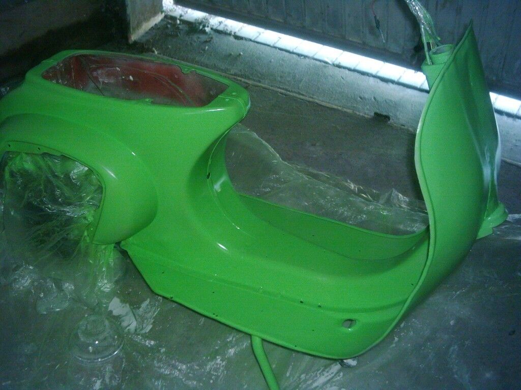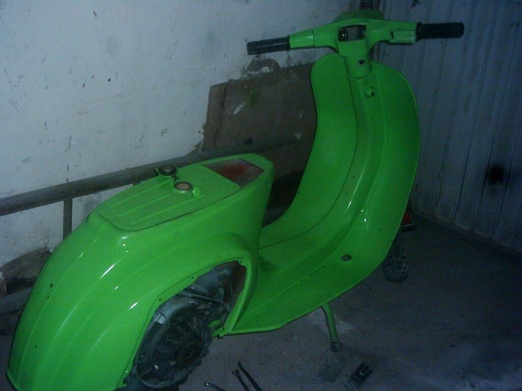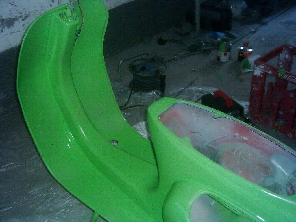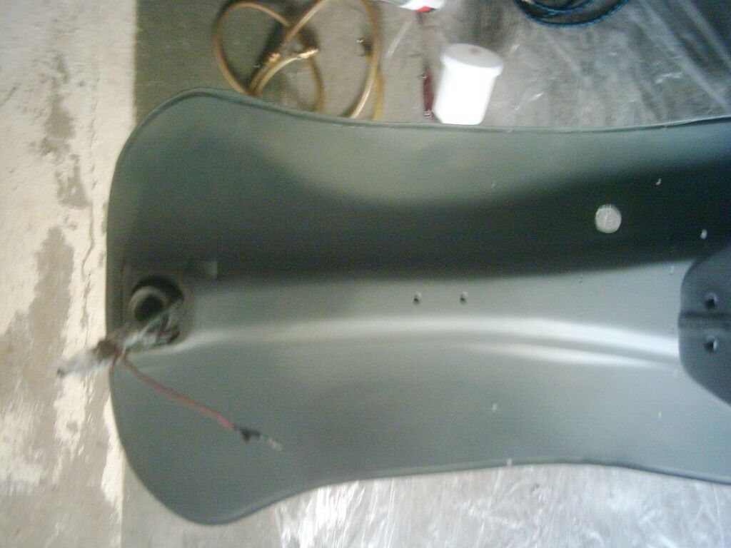 Hab den ganzen Lack runter gemacht (Drahtbürste auf Bohrmaschiene) hat ganz schön gestaubt in der Garage habe auch gleich danach grundiert und gespachetlt sieht jetzt so aus.Das Beinschild muß nur leider noch richtig ''gebogen werden''