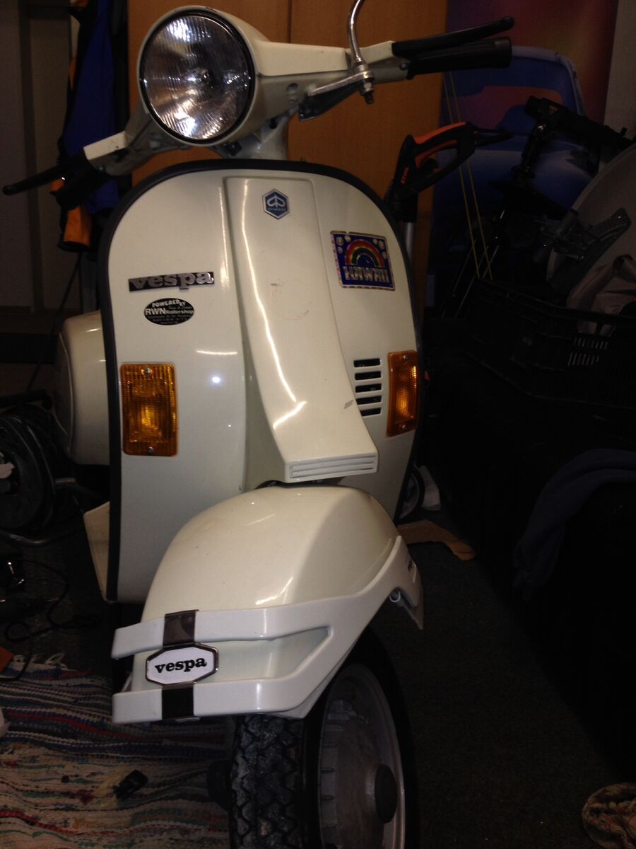 Desweiteren habe ich vor zwei Monaten eine Vespa 50N Bj 1975 "Rundlicht" bekommen. Sie stand 25Jahre im Schuppen und auch in meiner Jugend (gehörte dem Vater eines Freundes) sind wir mit ihr "schwarz" gefahren (ohne Führerschein!)