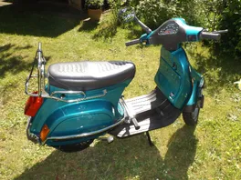 Die Vespa wurde nur bei Sonnenschein gefahren, Regen kennt sie nicht, in 23 Jahren und nicht mal 10.000km nicht! Der Lack ist ein Traum, meine absolute Wunschfarbe. Chromschutzbügel für das Schutzblech sowie Sturzbügel für die Seiten und Soziusrasten in Chrom. Ebenfalls hat sie einen Chromgepäckträger und einen "Schlafzimmerblick". Der Sitz ist quasi jungfräulich. Die PK 50 XL ist ein 4-Gang Schalter, OHNE Elestart, was ich super-klasse finde, denn so kann mir meine Batterie auch nicht leer gehen! Man glaubt es nicht, nach all den Jahren, die Vespa ist kalt, Benzinhahn auf, Choke gezogen, einmal treten, und sie läuft. Ganz ruhig und leise. Immer, wenn ich ihren 2T-Motor höre, könnte ich so schwärmen. Der Lack kennt Kratzer nur vom Hören sagen, Dellen gibt es überhaupt nicht, der Gesamtzustand würde ich sagen eine lockere 1-. Ihre erste Fahrt hat sie in diesem Jahr mit mir gemacht, bei strahlendem Sonnenschein. Was mir aufgefallen ist, die Leute verdrehen sich echt die Köpfe und lächeln einen an, wenn man mit ihr angefahren kommt. Einen Namen haben wir auch schon für sie. Immer, wenn ich sie sehe, schwirrt mir "Bella-Donna" im Kopf herum, kurzum hat sie ihren Spitznamen "Bella-Donna" bekommen.