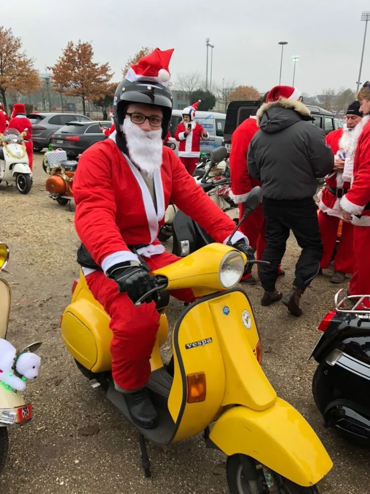 Meinen ersten Vespakontakt hatte ich Anfang der 90er mit der roten 200er meines Vaters, die leider ein Freund gekauft und mit nach USA genommen hat. Mit 16 dann einen "coolen" Automatikroller (...) während mit 18 dann erstmal ein Auto gekauft werden musste. Den Motorradführerschein hab ich mit 25 gemacht und seit inzwischen 5 Jahren bin ich nur noch auf 2 Rädern unterwegs. Auto ist auch Blödsinn in der Stadt...