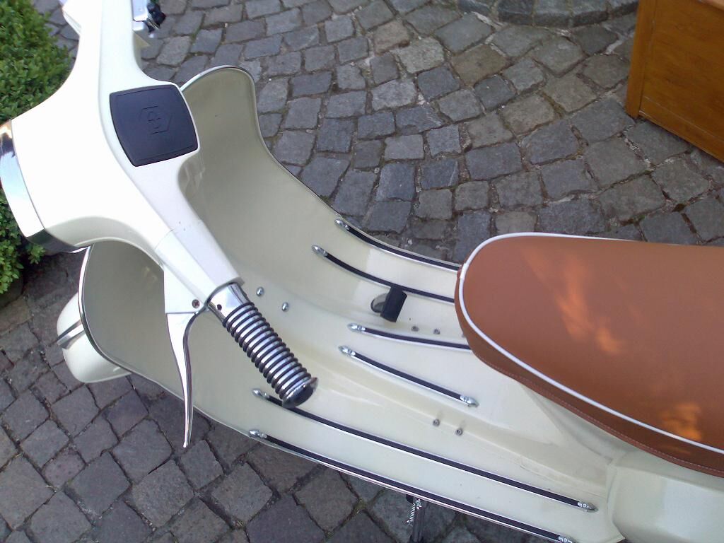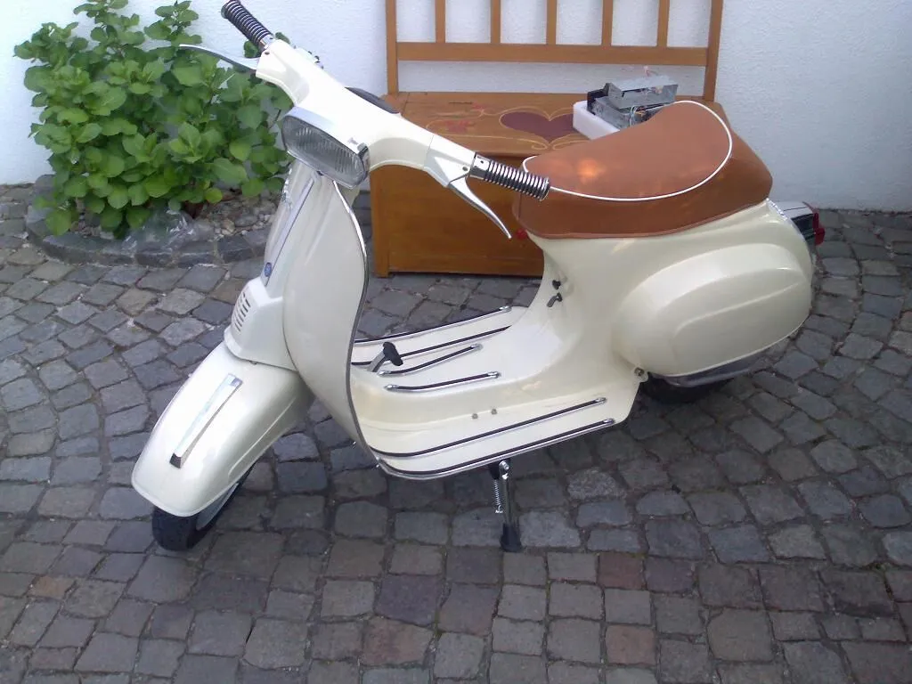 Hab ca. 2 Monate gebraucht um sie herzurichten (mit Wartezeit auf Teile, etc.) und ich glaube dafür das sie ziemlich runtergekommen war (Beulen, Lack, etc) und ich ein Laie in Sachen Vespa, lackieren bin hab ichs ganz ok hinbekommen, oder? Alles selbst gemacht und sehr stolz.