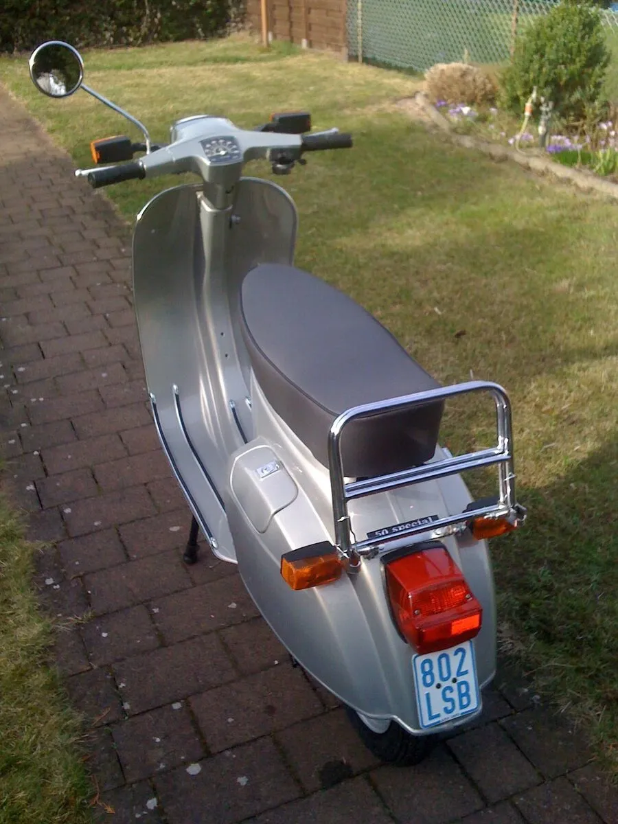 ...sicher. Hätte ich machen können. Ich weiß auch um die ewige "O-Lack" Diskussion. Ich habe aber eben lieber einen schönen Neulack als einen angeranzten O-Lack. Was man auf den Bildern übrigens nicht so gut sieht ist, das da stellenweise von meinem Vater, der die Vespa bis Ende der 90er auf dem Weg zur Arbeit gefahren ist, vieles mit der teilweise farblich unpassenden Spraydose ausgebessert und überlackiert wurde. Außerdem war an vielen Stellen der Lack abgeplatz und hat rostige Stellen hinterlassen. Der Clou jedoch war, das mein Vater rechts vorm Seitenbacken ein Loch in die Karosse gefräst hat, um ein Honda Zündschloß einzubauen *entsetzt schüttel*. Das musste natürlich raus und das Loch geschlossen werden. Mein Ziel war eine Vespa in absolutem Neu- und fast Originalzustand - unverbastelt eben. So wie sie uns damals verkauft wurde. So wie sie 2006 noch aussah war mir das einfach zu"ranzig". Ich habe alles wieder auf original zurück - bis auf die Farbe da bin ich vom original Piaggio Silber auf Panacotta metallic von Opel umgestiegen weil mir diese Farbe extrem gut gefallen hat. Sie ist aber nah am Original mit einem Touch ins Gold...