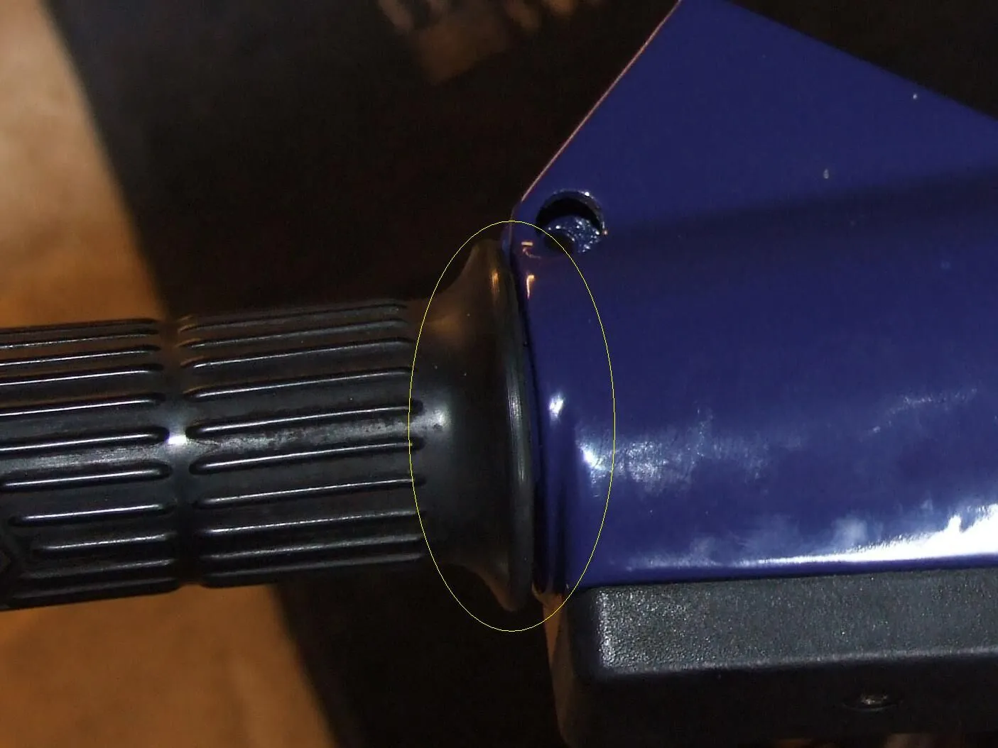 Ich wollte mir diese netten Chromgriffe (die mit den Gummi-O-Ringen) an die PX verbasteln, da ist mir folgendes aufgefallen. Die Griffe grenzen an den Innenseiten ja an die Aufnahmen der Hebel und Licht-/ Blinkergehäuse. An letzteren sind an den Außenseiten relativ große Aussparungen, die die Innenseiten der Griffe nicht abdecken.