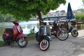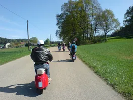Auf dem Heimweg, 30 km nach Regensburg, ist mir dann noch der Malossi Verbindungsgummi Vergaser-Ansaugstutzen gerissen, heilige scheiße, habs dann irgendwie geschafft den halben Gummi so zu befestigen dass die ganze Kacke (ein netter Stihl-Händler hatte Gott sei dank ne größere Schaluchschelle in der Ramschkiste....) hält und bin damit sogar noch heimgekommen. Wasn Tag! ![]()
