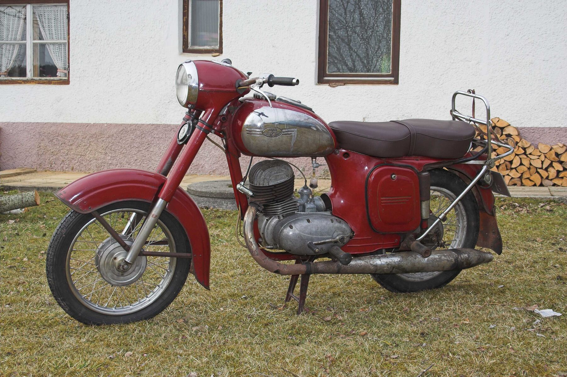 meine jawa hat einen richtig schönen, originalen patinösen gesamtzustand. viele teile sind schon angerostet, nichts durch.