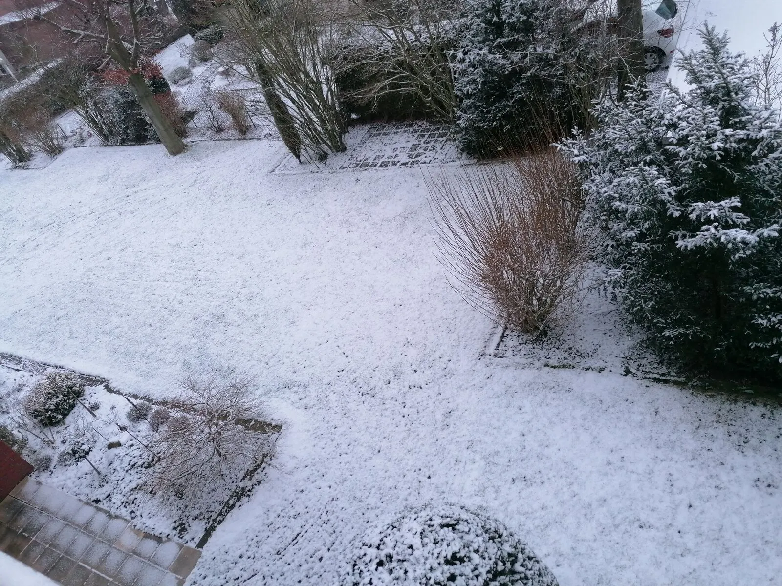Hier gestern leichter Frost, den nassen Schnee hat es an den Bäumen festgefroren und wo er von Spaziergängern verdichtet worden war gibt es glattes Eis.