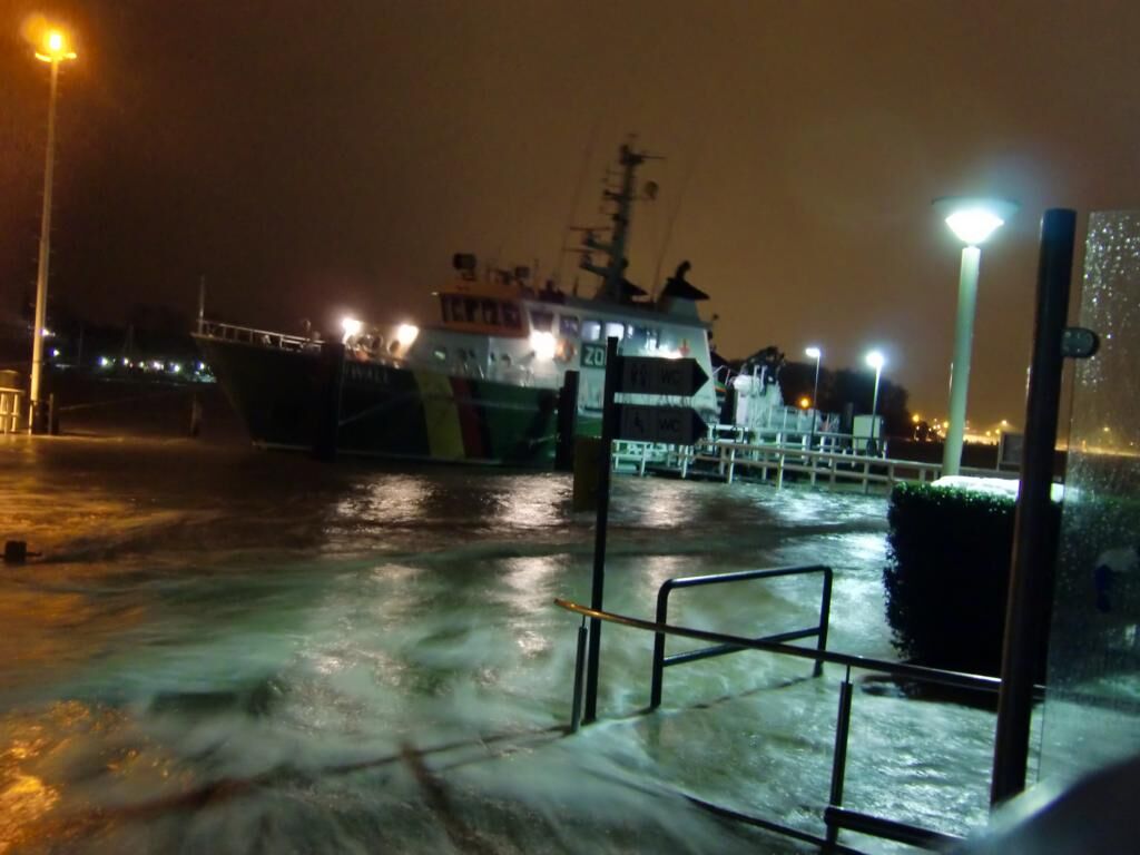Es schneit seit 5 - 6 Stunden und wir haben im Mittel 6- 7 Bft. In Böen 9 Bft.