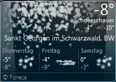 Sankt Georgen im Schwarzwald, -3°C, Schneeschauer
