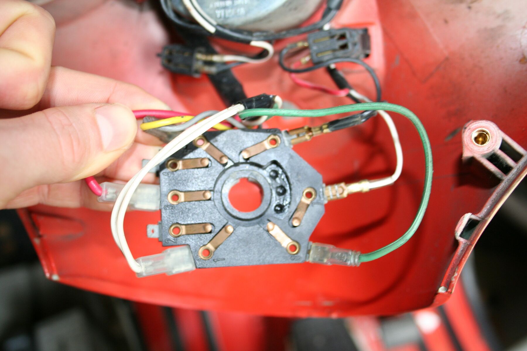 Wir haben eine alte PX80 in der Garage stehen die mein Vater seit einem kleinen Ausrutscher nicht mehr gefahren ist, sie ist sehr verstaubt aber ich will mal schauen was damit noch passieren kann nur leider hat er den Schlüssel verloren :( so kann ich nicht mal schauen ob sie noch anspringt. Ich habe das Schloß jetzt ausgebaut und würde sie kurzschließen wollen, meine Frage ist welches Kabel nun an welches kommt. Dazu hab ich mal ein Foto gemacht.