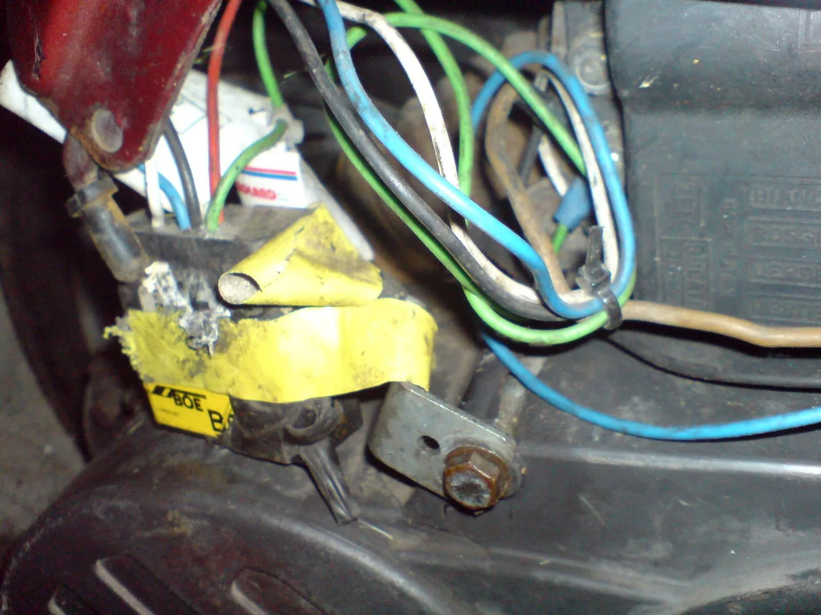 + CDI (Zündspule): sie befindet sich auf der rechten Seite unter der Backe hinter dem Motor (etwa in Höhe der Federung) ist ein Schwarzer Kasten (ungefähre Größe einer Zigarettenschachtel) Sie hat oben meherer Anschlüsse und irgendwo kommt noch ein Kabel aus der Box heraus. Außerdem führt das Zündkabel von ihr zur Zündkerze. Hier prüfst Du, ob die Kabel alle in Ordnung sind und ob keines abgerissen ist. Vor allem das Kabel, das aus der CDI raus führt ist wichtig. Es muss mit der Karosserie verschraubt sein und bildet den notwendigen Masseanschluss. Die CDI ist nach der Zündkerze die häufigste Ursache und kostet neu ca. 35 Euro.
