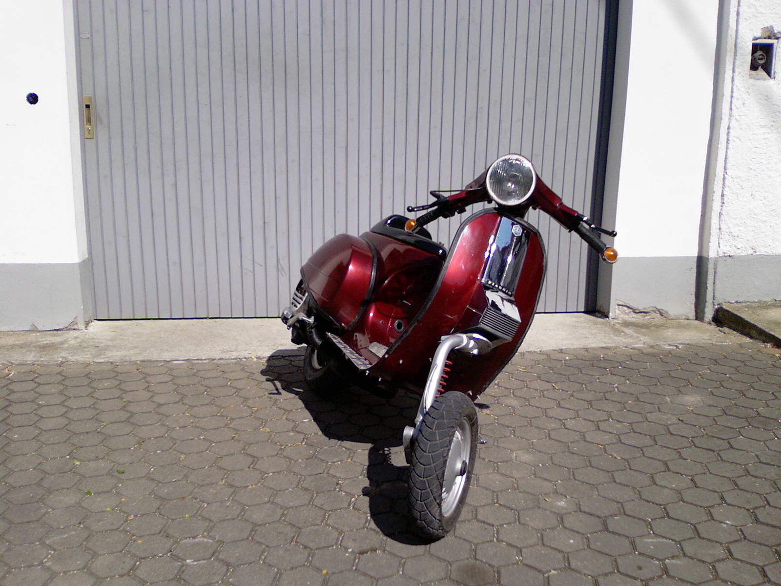 will mir getunte vespa kaufen. sie hat einen 26iger delorto vergaser, 210 malossi, einlass-überströmer gefräst, rennauspuff(welchen weis ich nich genau, seht ihr aber vielleicht selbst auf den bildern)dropbar lenker biturbo vorne, sebaco hinten, usw, seht ihr ja lebst. sie ist komplett so wie sie ist zugelassen, und eignetlich in einem guten zustand. der lack ist auch noch in ordnung. eder verkäufer meint sie hätte +20ps, was ja auch realistisch wäre, aber eingetragen sind nur 12. komisch?!? weis einer von euch wie das kommen kann?wäre um ungefähre schätzungen sehr dankbar, weil es ja nur wenig vergelichsmöglichkeiten gibt. hat jemand vielleicht schon erfahrung im ver/kauf von selchen vespen?