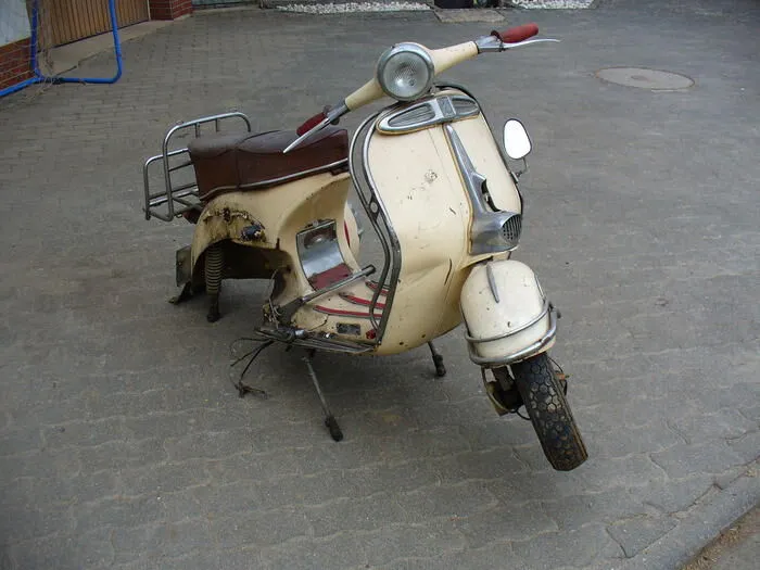 ein freund von mir hat einen dachbodenfund gemacht, wie sich herausgestellt hat ist es eine vespa 150 gs/3 aus augsburg also deutsche produktion bj. 1960. Sie hat keine papiere, keinen motor und die rechte seitenbacke fehlt. ansonsten ist sie komplett also mit sämtlichen emblemen, sturzbügel etc. Hat aber nen kleinen knick im beinschild. Ori. lack bin ich mir nicht sicher da der deckel wo wahrscheinlich die batterie reinkommt innen ne andere farbe hat.