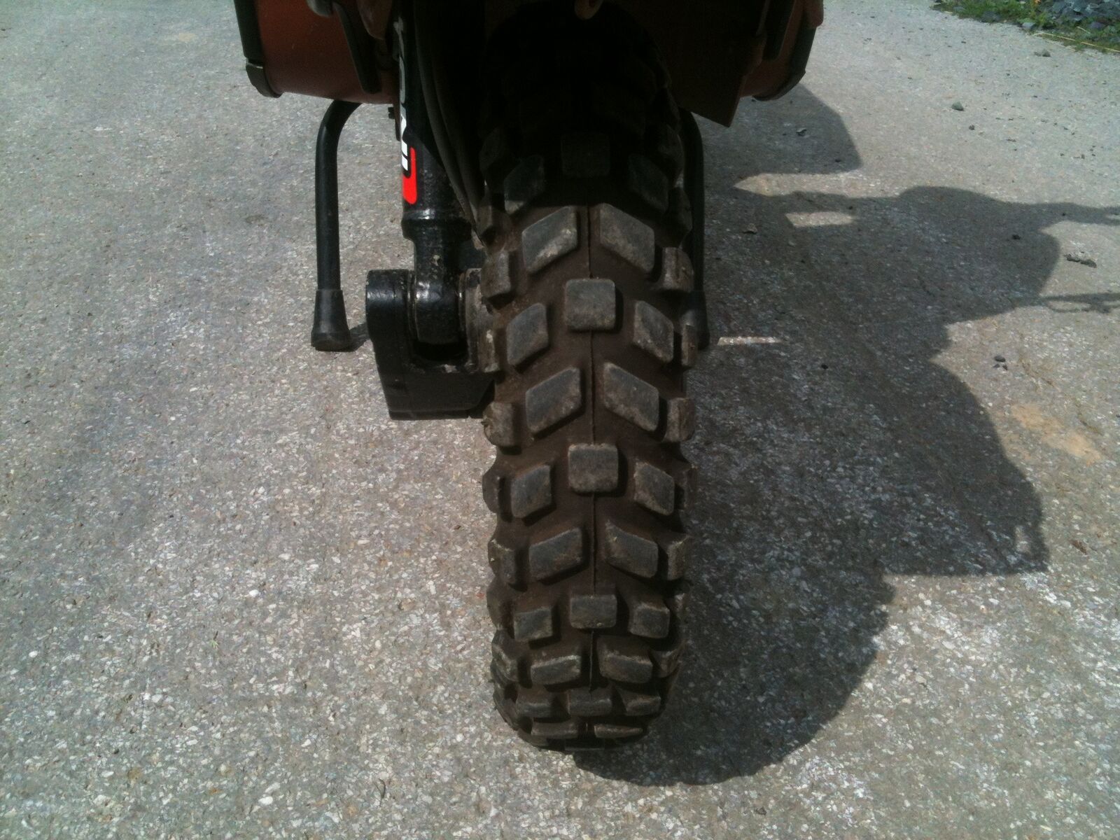 Die Pirelli SC 74 habe ich auch in ordentlich abgehangenem Zustand (die Reifen werden seit geschätzt 15 Jahren nicht mehr produziert) auf einem PK Crosser. Fahrgefühl auf Asphalt finde ich allerdings ziemlich bescheiden. Ich glaube, deiner ist falsch montiert bzgl. Laufrichtung.