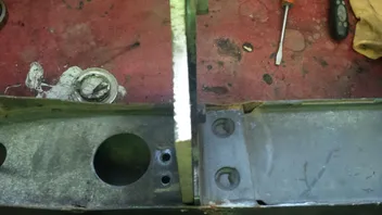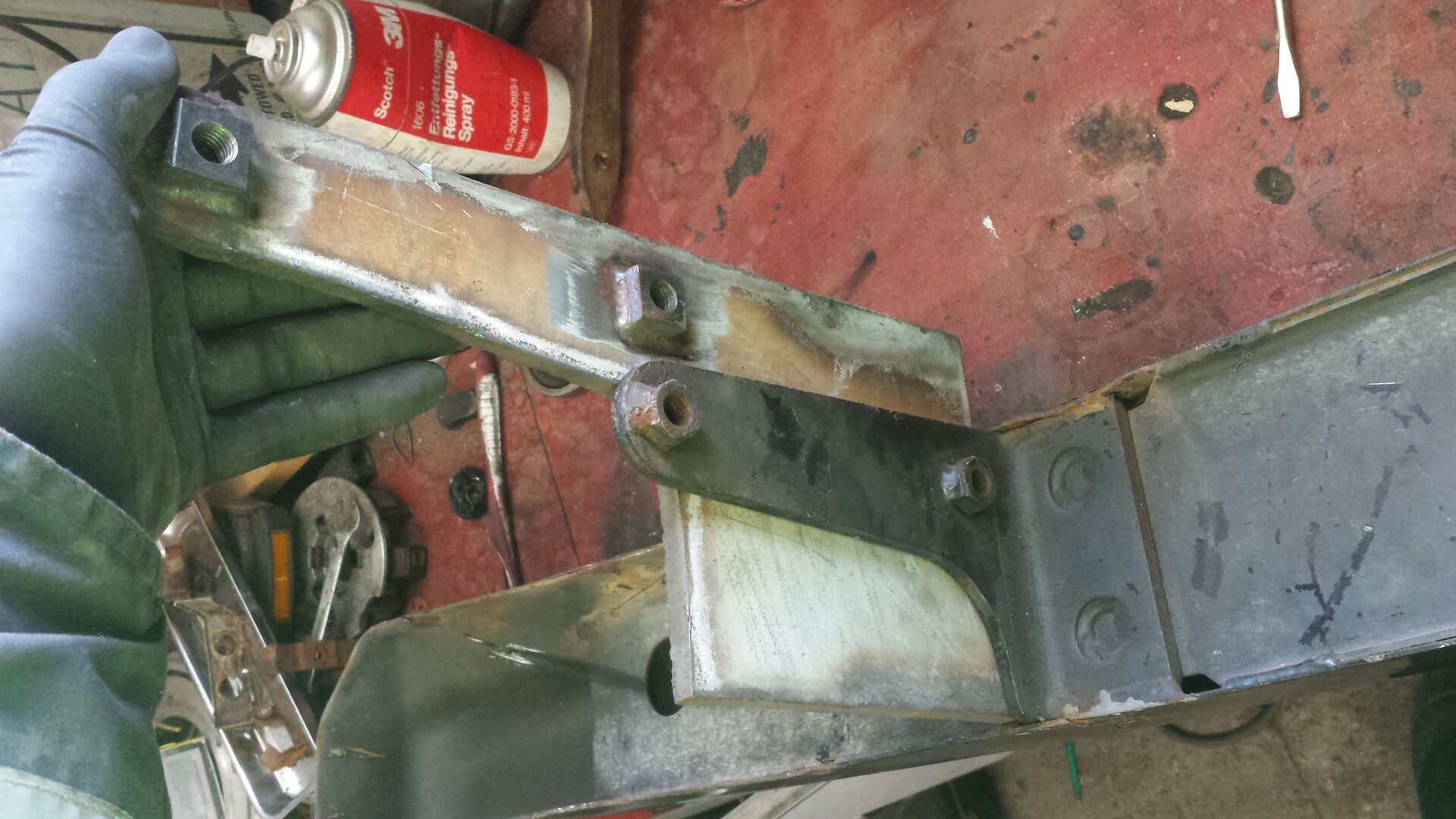 Die alte halterung wird abgeschnitten und die neue noch abgekanntet und dann angeschweißt. Feddich ist die höhere und stabielere Halterung