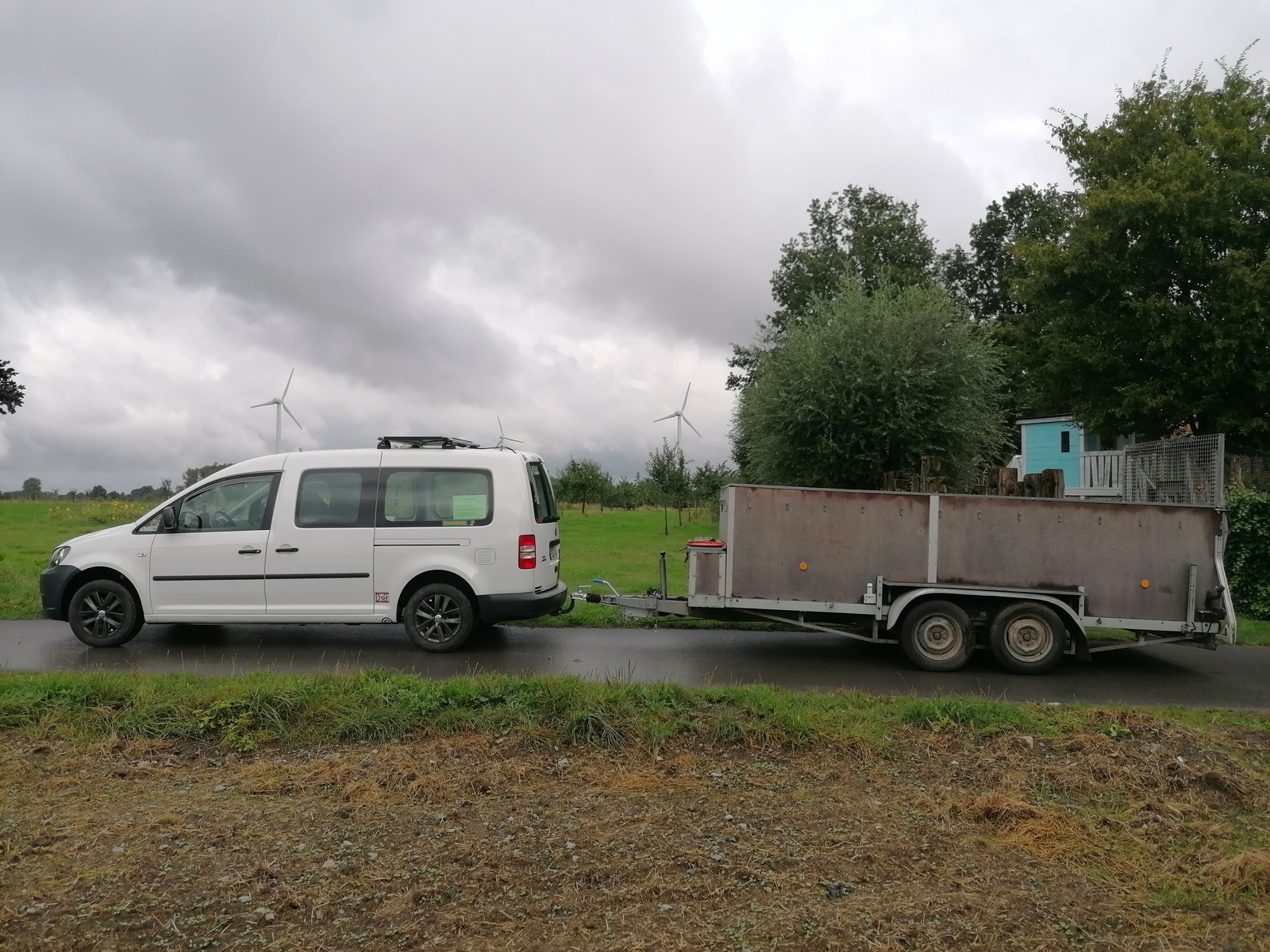 2t Hänger mit Rampe dran. Caddy darf 1500kg ziehen. Wird knapp. Fahre damit aber noch auf ne Waage. UND nach ner Auflassung muss ich auch noch schauen für'n Caddy