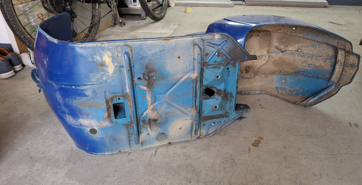 Ich recherchiere jetzt erst mal im Netz, was genau ich mir da an Land gezogen habe. Müsste eine ganz frühe 78er sein. Der originale Lack ist blau, dann müsste das Azzurro China 402 sein…