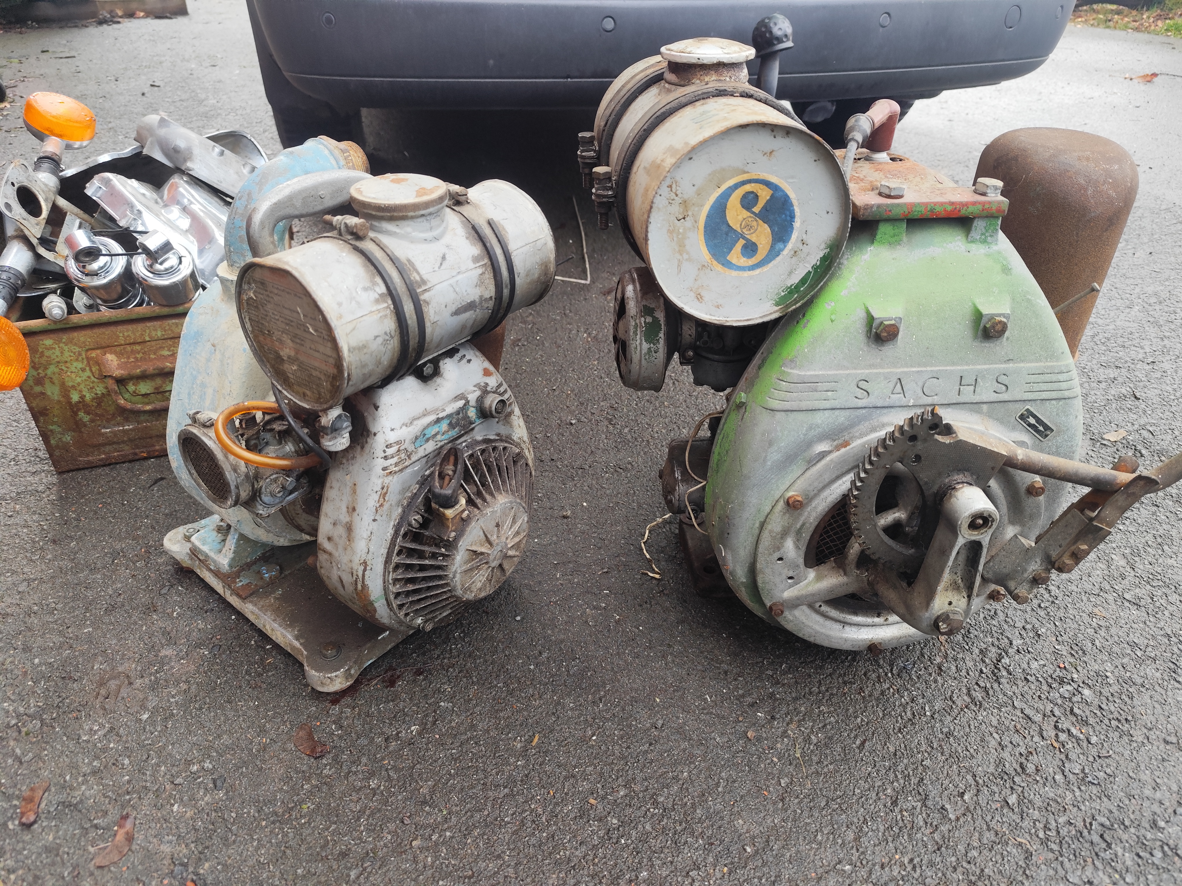 Der linke ist ne Pumpe und der große hat ne Riemenscheibe dran. Handgerissen mit Hebel. Geil.... Abbauen und dann an die Kirmesbude spaxen
