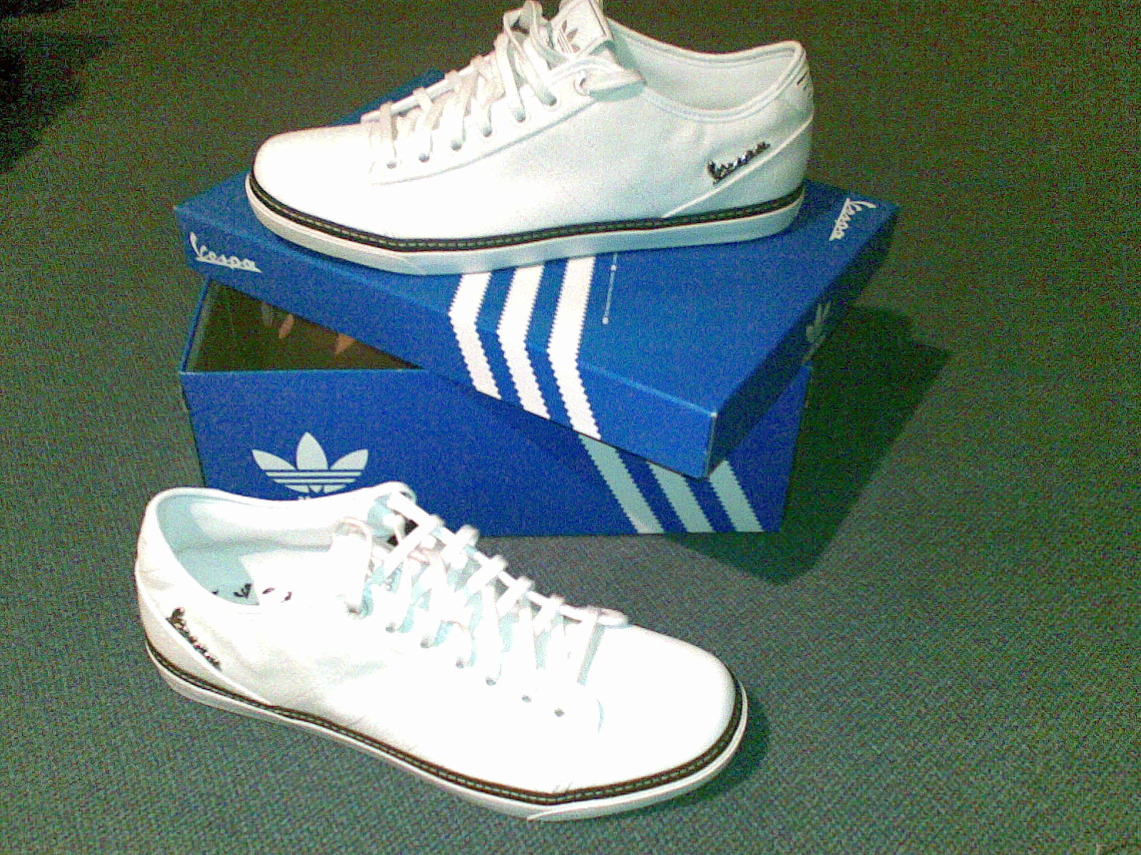Die Adidas Vespa Schuhe in weiß. Die sehen si Hammer aus und tragen sich super.