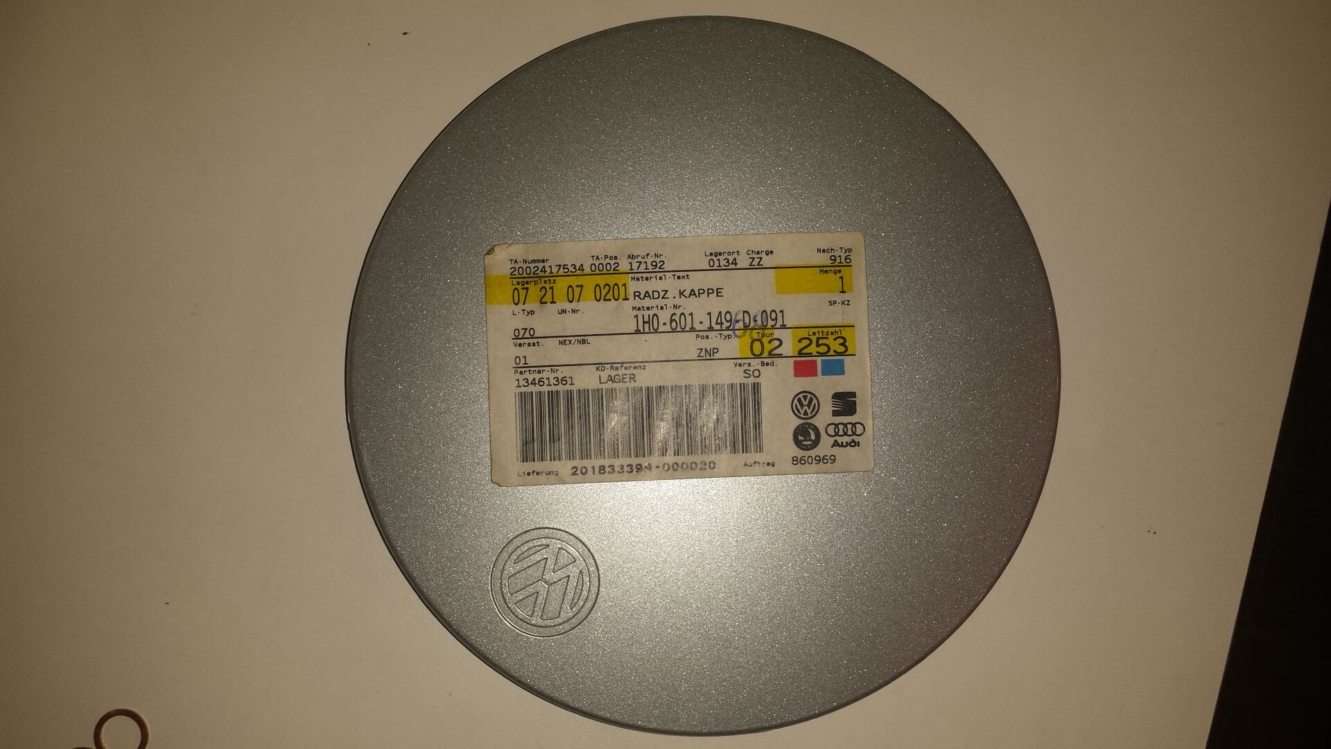 Ein 25 Jahre alten unbenutzen Felgendeckel für meine VR 6 Alufelgen. Jetzt habe ich entlich alle 4 zusammen.