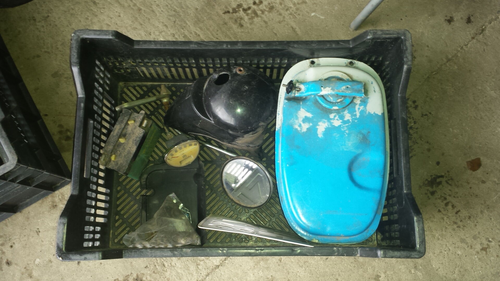 Wurde damals gestrahlt und blau gelackt. Das grau auf dem tank ist o lack.