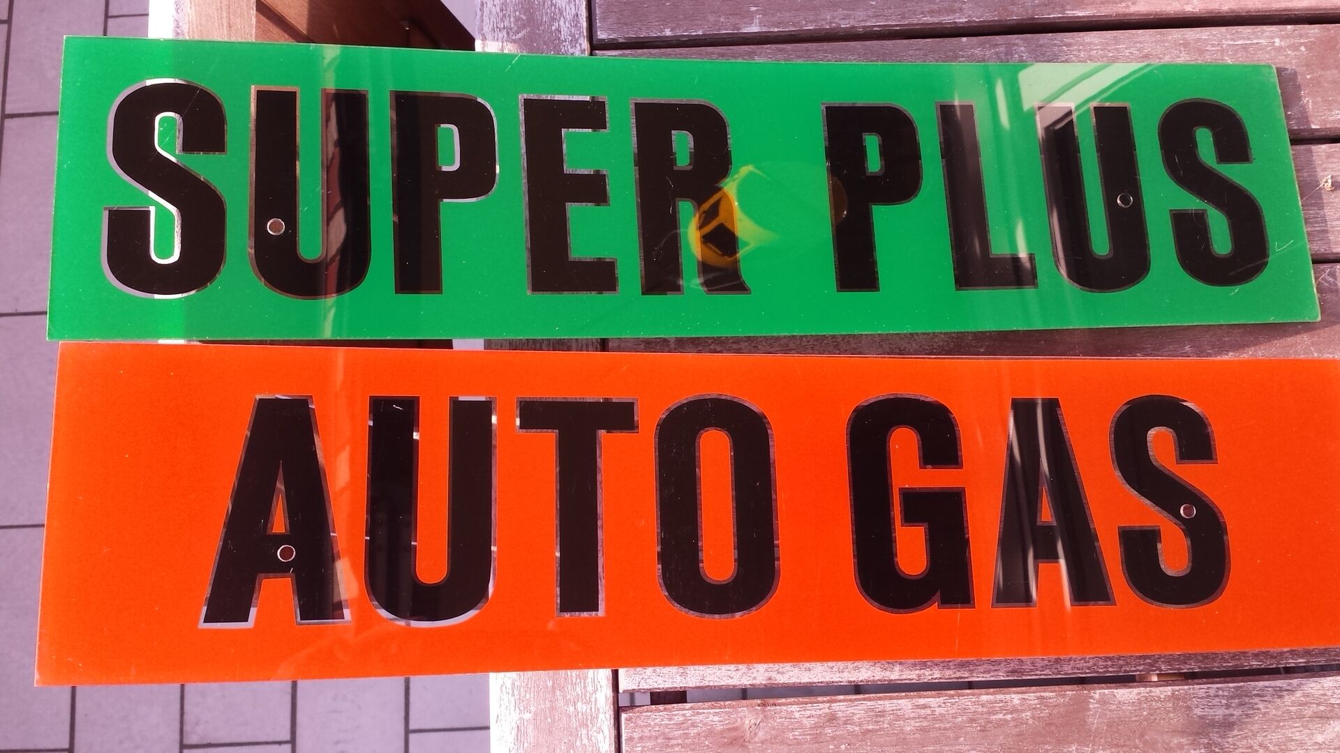 2 80er Jahre Tankstellen schilder. Beide Neuwertig. Das Autogas war noch OVP