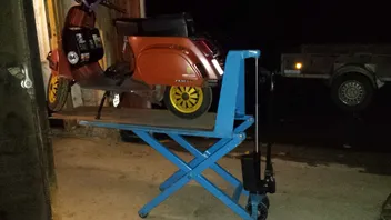 Hab mir heite ne mobile Hebebühne gekauft. Oder einfach nen hoch hubwagen. 1000kg sollten reichen an hubkraft.jetzt wird noch ein blech gekanntet welches ich über die zinken schieben kann und feddich ist die bühne. Steht sehr sicher. Kopflastig ist es nicht. Habe mal an der gabel runter gezogen. Umkippen wird schwer. Werde es die tage mal anderes herum versuchen. Also motor nach vorne. Aber da mache ich mir ehrlichgesagt keinen kopp deüber das da was passiert.