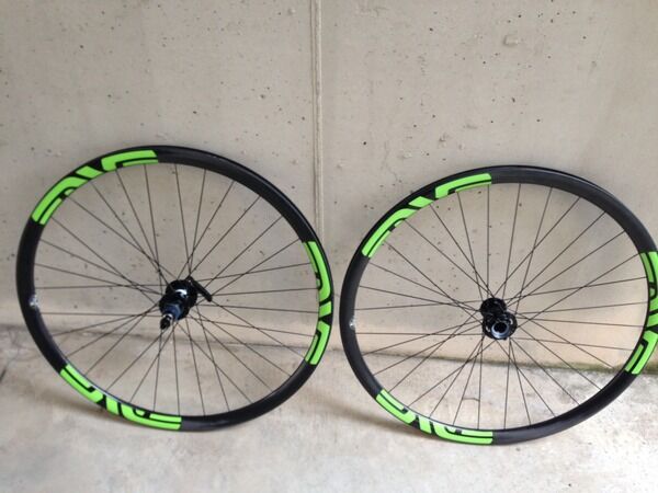 Ein paar (gebrauchte, aber nur 100 km gefahrene) ENVE Carbon 29 XC-Felgen (aber mit schwarzen Stickern) für mein 2014er Cannondale F29 Factory Racing. Muss den DT Swiss-Freilaufkörper nur noch auf Shimano wechseln und dann kann im August in England geheizt werden. :)