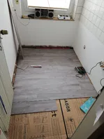 Farbe,weiß,und Fußboden ,grau, für die riiiiesige Küche. Und alles für umme. Rest Farbe von Bruder und rest Laminat von meinen Onkel.