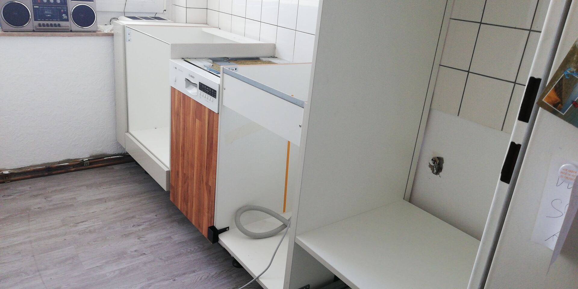 Habe jetzt noch ca 2 cm Luft neben den Hochschrank. Also perfekt.