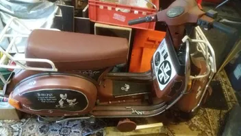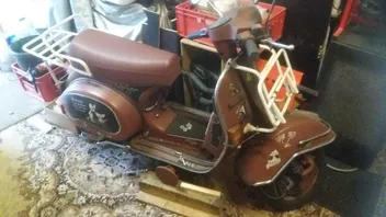 Ich würde oben am vorderen Gepäckträger eine Klopapierrolle anbringen. Sieht dann stimmiger aus. Oder alternativ dazu so einen WC-Erfrischungseinhänger mit Duftsteinen. Dann riecht der Roller auch gut wenns regnet.