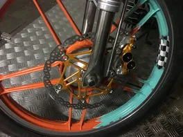 Heut nach langer Krankheit mal wieder in der Werkstatt, die Puch Maxi hat n Update bekommen, vorn und hinten schwimmende Bremsscheiben und die neuen 4 Kolben Bremssättel V4 von Hope mit selbstgebastelten Haltern und Abstützung; Alter wat n Unterschied zu vorher...