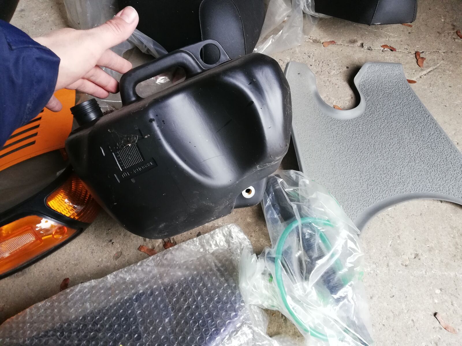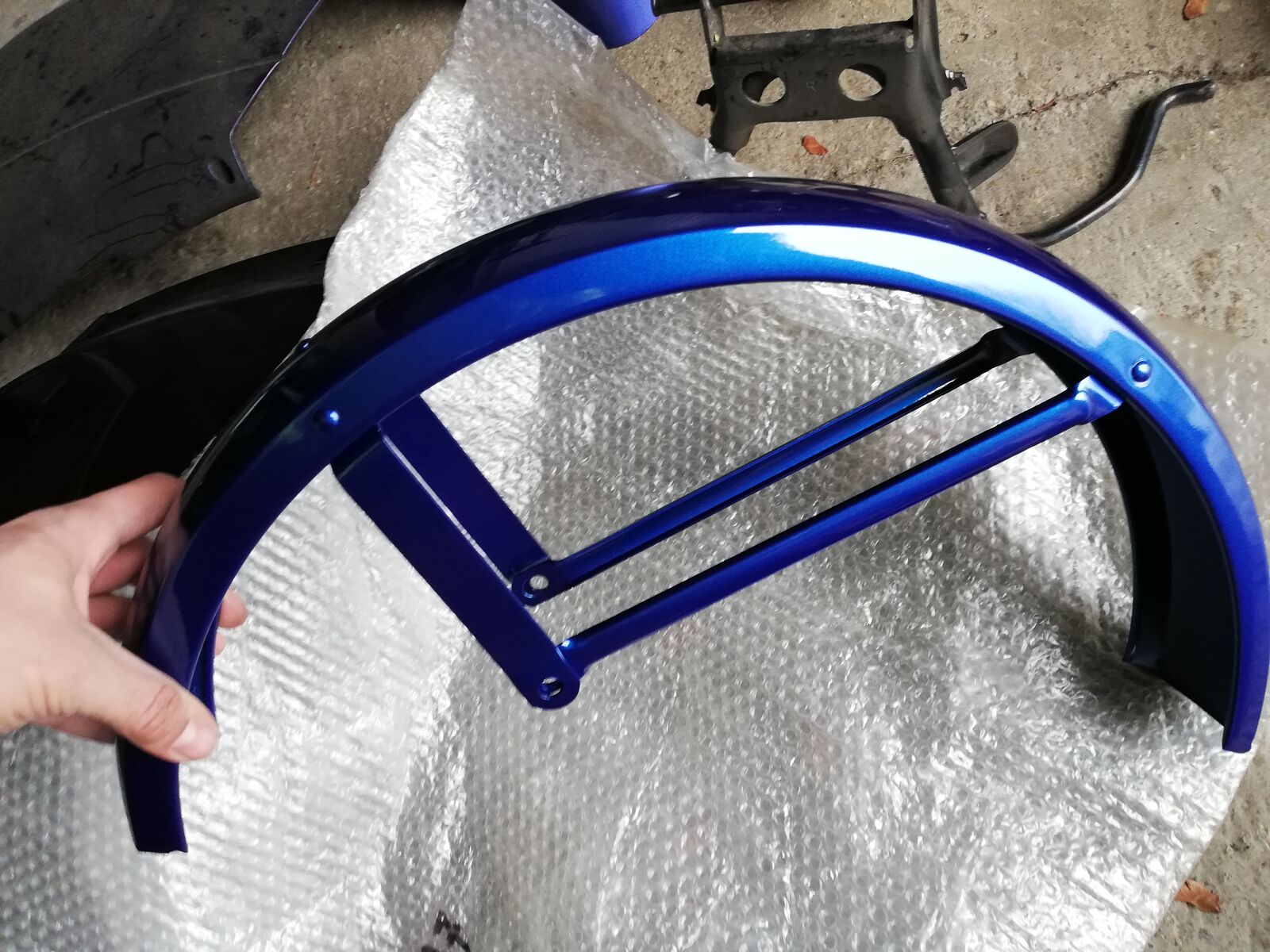 Ich würde oben am vorderen Gepäckträger eine Klopapierrolle anbringen. Sieht dann stimmiger aus. Oder alternativ dazu so einen WC-Erfrischungseinhänger mit Duftsteinen. Dann riecht der Roller auch gut wenns regnet.