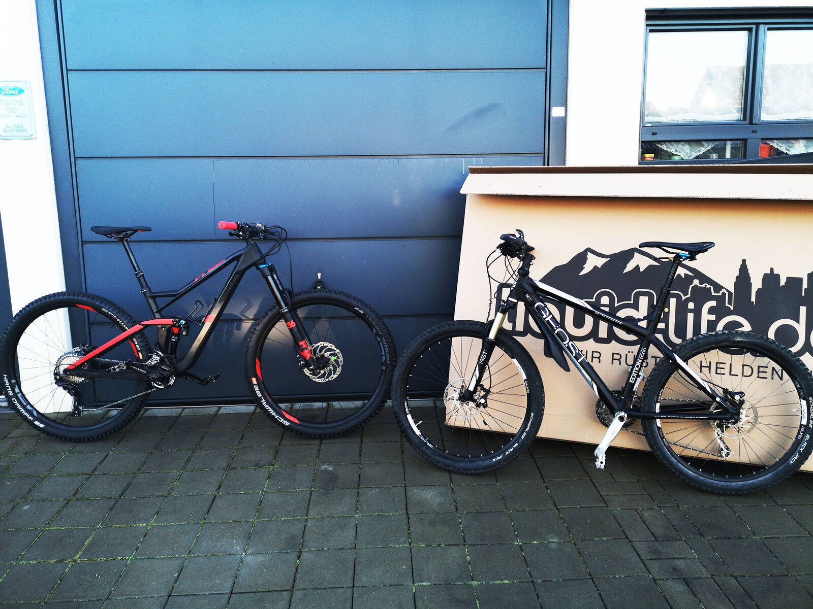 Ein Cube Stereo C62 Fully in Carbon in 29"(links). Ist genau so leicht wie mein Hardtail in 26" (rechts)