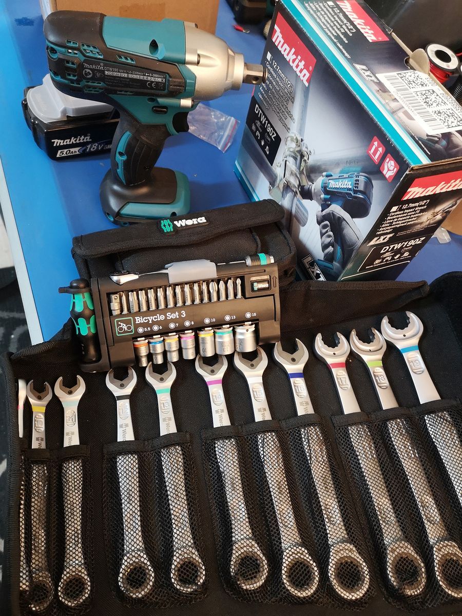 Wera Joker Ratschenschlüsselsatz, Wera Bicycle Set 3, und Makita Schlagschrauber