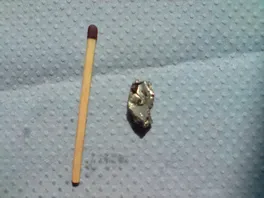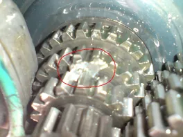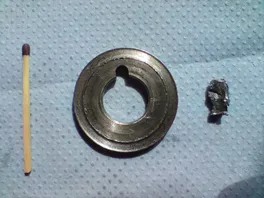 Die Bilder sind in voller Größe etwas unscharf, daher schwer zu sagen aber spontan würde ich auf den Kupplungshalbmondkeil oder ein Teil des Kupplungskronenmutternsicherungskäfigs (was ein Wort) tippen. Letzterer ist aus Blech, sitzt unter der Kupplungsmutter und hat rundum Zacken, die nach festziehen der Kupplungsmutter in dieselbe gebogen werden, um ein Lösen zu verhindern.