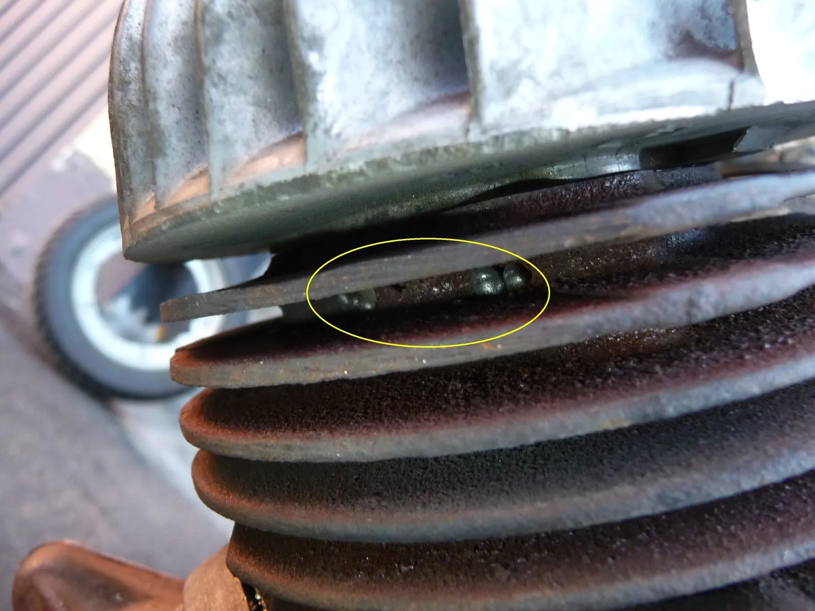 Grad schaute ich noch nach der Zündkerze, diese war richtig schwarz (Vergaser war vorher eigentlich super eingestellt, und sie rannte förmlich für ihre 80 ccm), und der Motor war nach fast 1er Stunde noch richtig warm in der Gegend des Lüfterrades, Zylinder war noch heißer.