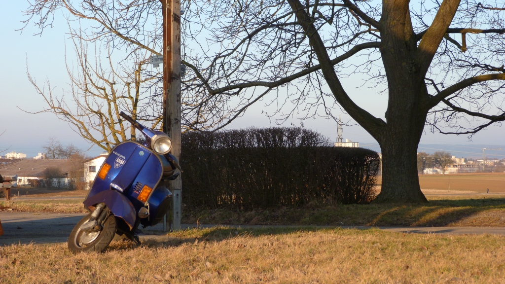 Sonst hat die Vespa eine Handschaltung, keinen Kickstarter sondern nur einen E Starter.