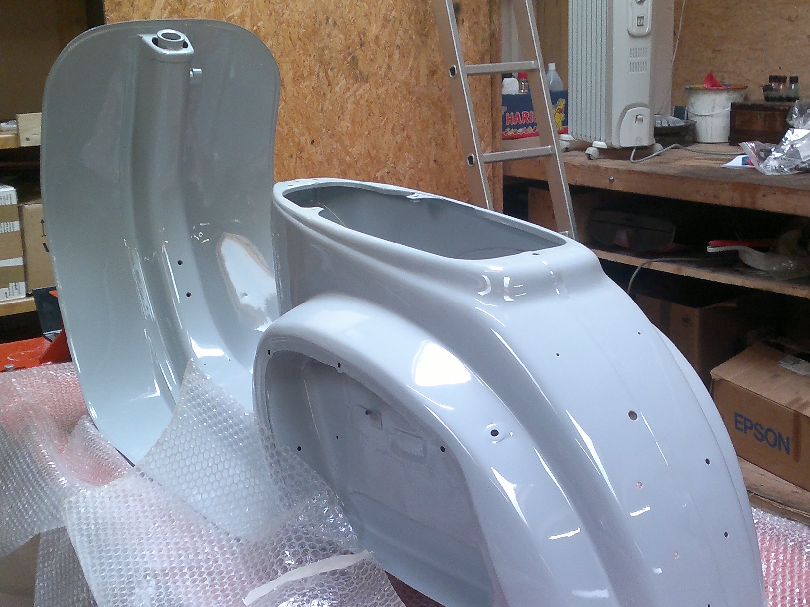 Letzendlich möchte ich die Trittblechenden und die linke Seitenhaube beilackieren und es sollte farblich schon halbwegs hinkommen.