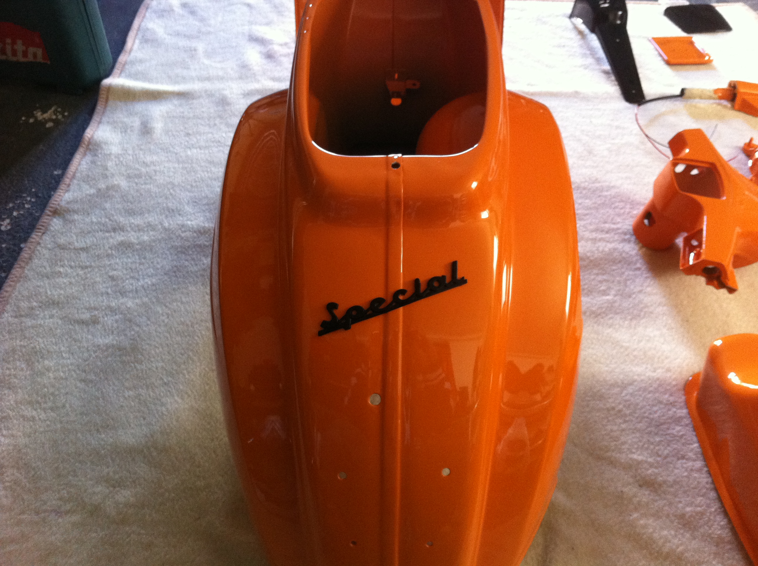 Letzendlich möchte ich die Trittblechenden und die linke Seitenhaube beilackieren und es sollte farblich schon halbwegs hinkommen.