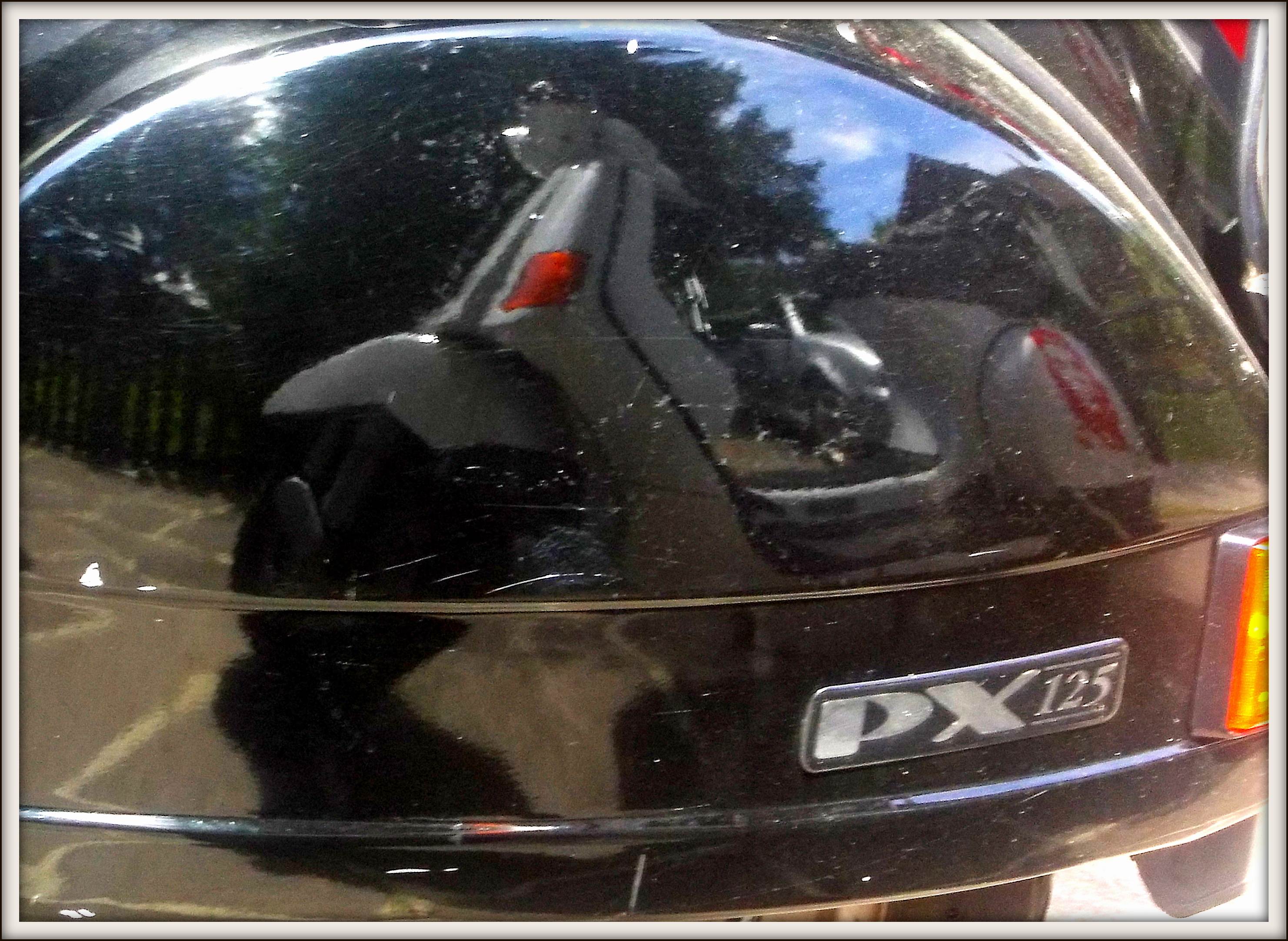 Eine 125er Cosa spiegelt sich in der Backe einer 125 PX.