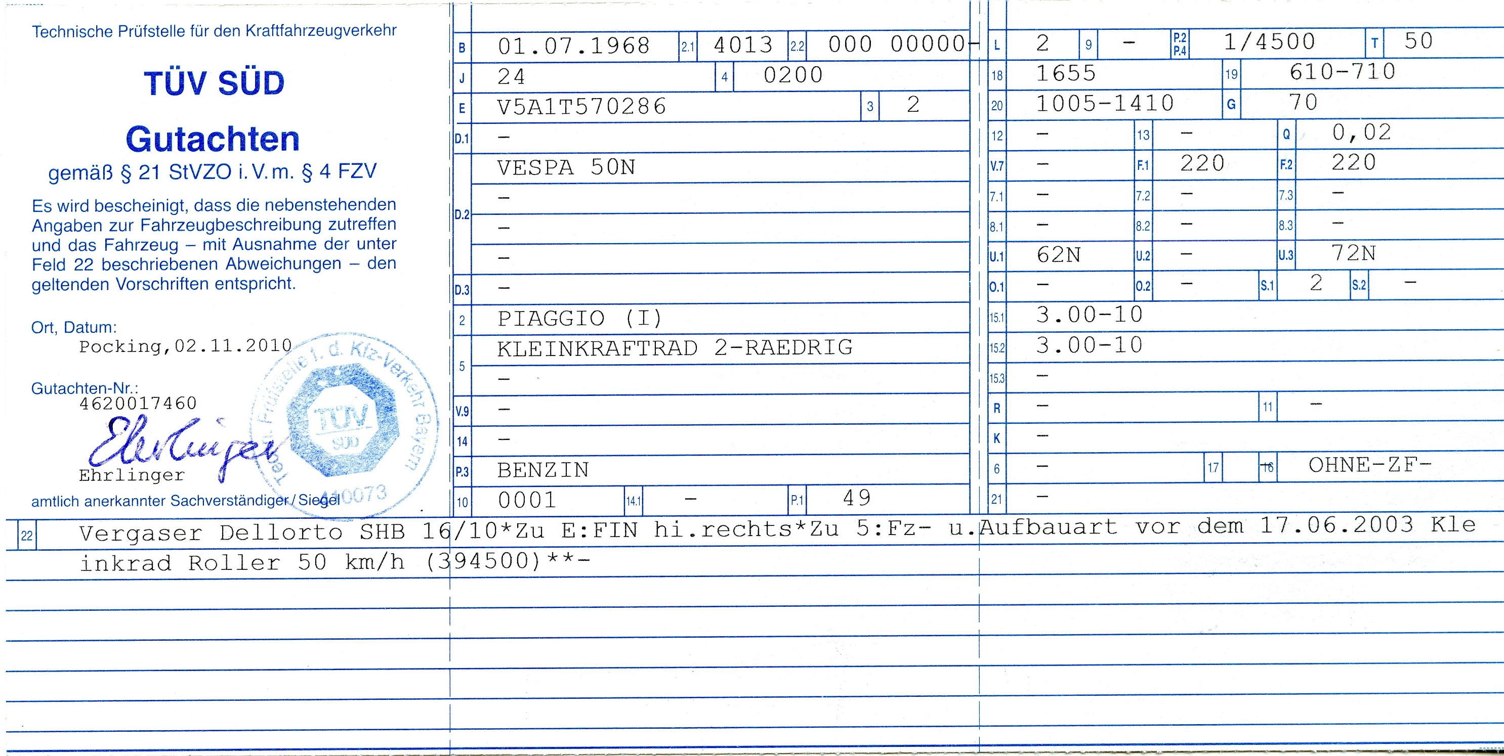 Ich habe eine Vespa BJ 1985 V5X3T oderPK50XL