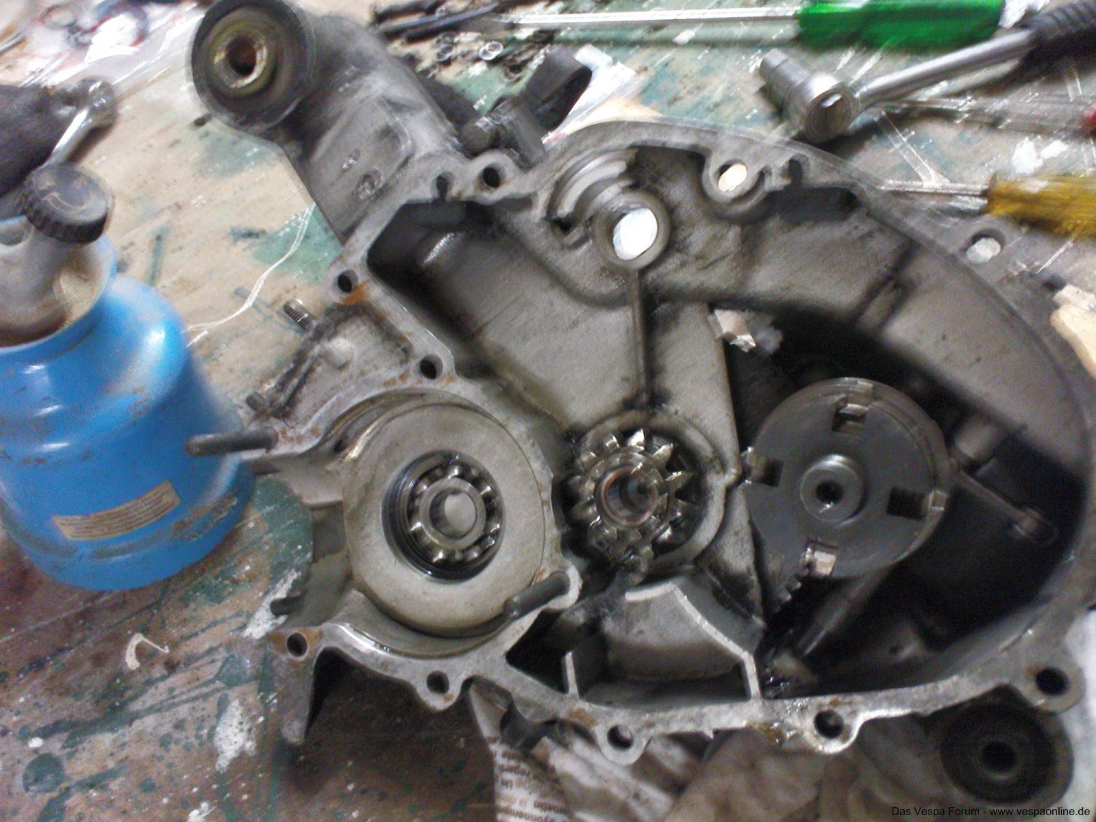 Ich habe erst später erfahren, dass die Vespa nach dem Umbau ca. 16 Monate gestanden hat. Jedenfalls ist der Motor undicht. Es wurde jetzt schon mal nachgearbeitet, angeblich war die Getrieböl Ablasschraube locker. Gestern habe ich sie abgeholt, der Motor war äußerlich komplett sauber. Heute bin ich ca. 30km gefahren , danach sah der Motor so aus (Videos im Link).