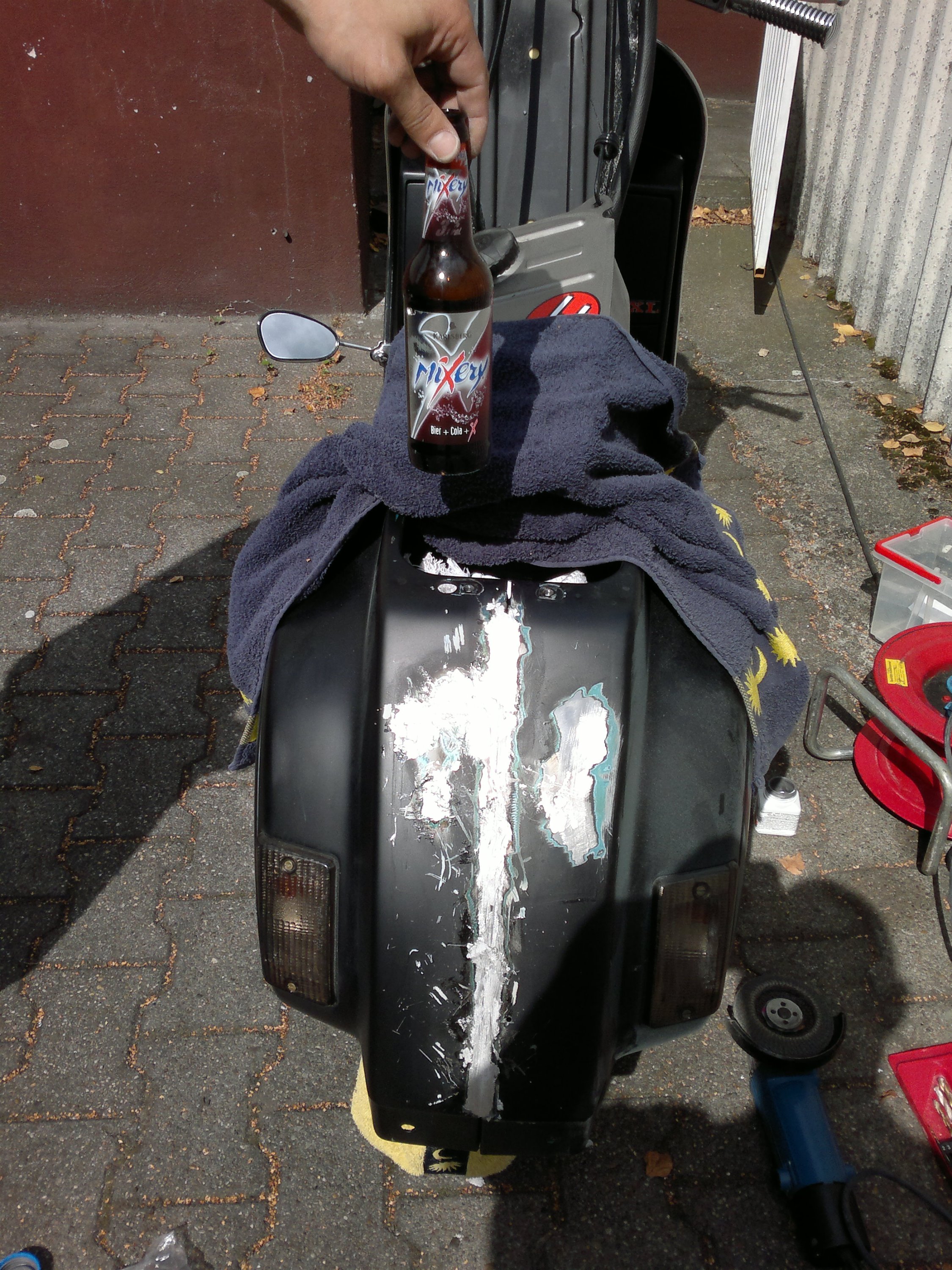 Hab mich mal am Wochenende an den Brotkasten äh Rücklicht gemacht, dabei wurde dann aus nur die überflüssigen Löcher verzinnen, gleich ne komplett Glättung.